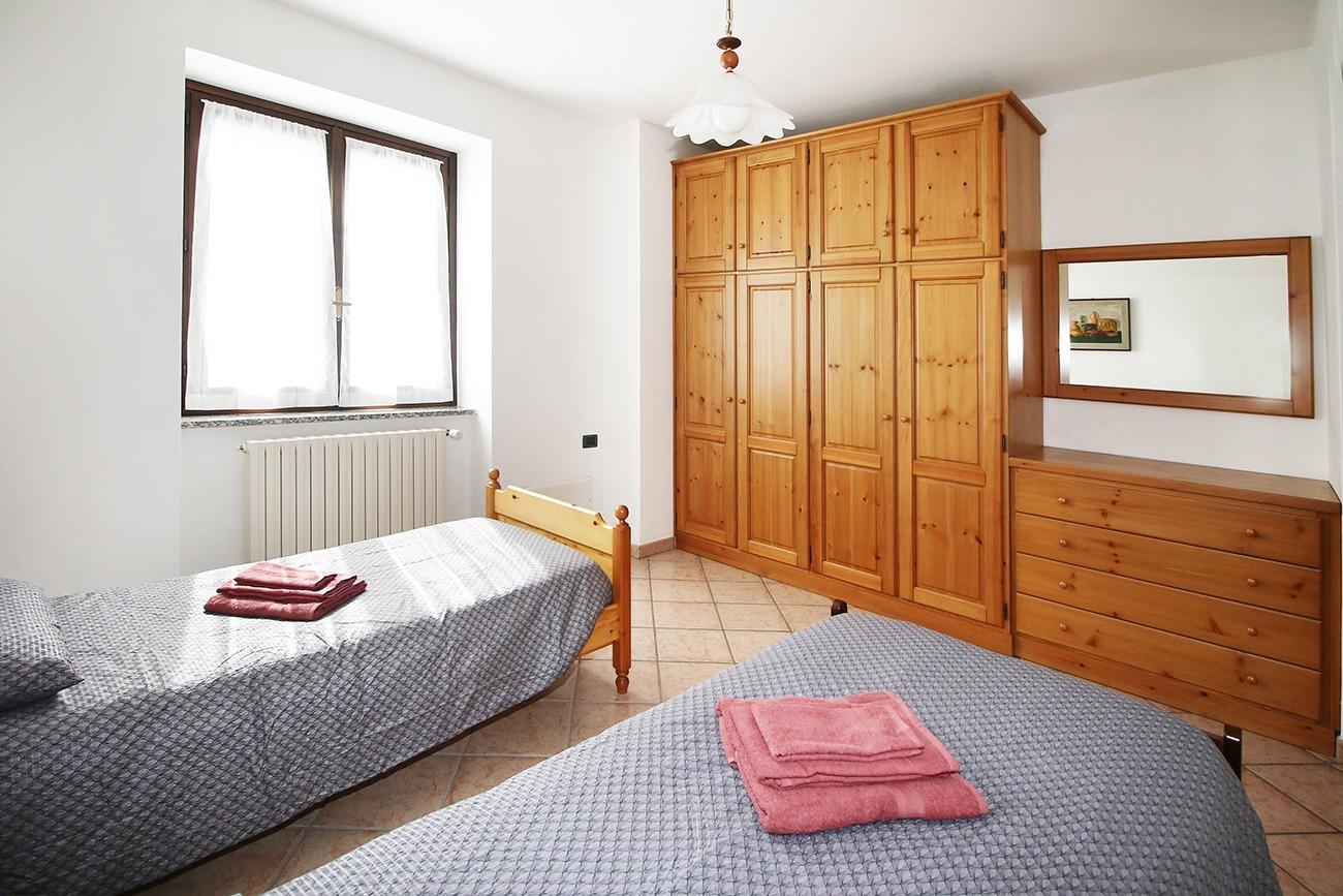 Ampio appartamento indipendente ad uso esclusivo composto da 2 camere (una matrimoniale e una con 2 letti singoli, soggiorno con divano letto matrimoniale, cucina abitabile attrezzata con tutto l'occorrente per cucinare, bagno con vasca e doccia e lavatrice, bagno di servizio. Balcone vista lago con sdraio e tavolino con sedie. Giardino di proprietà. Parcheggio privato davanti la struttura.